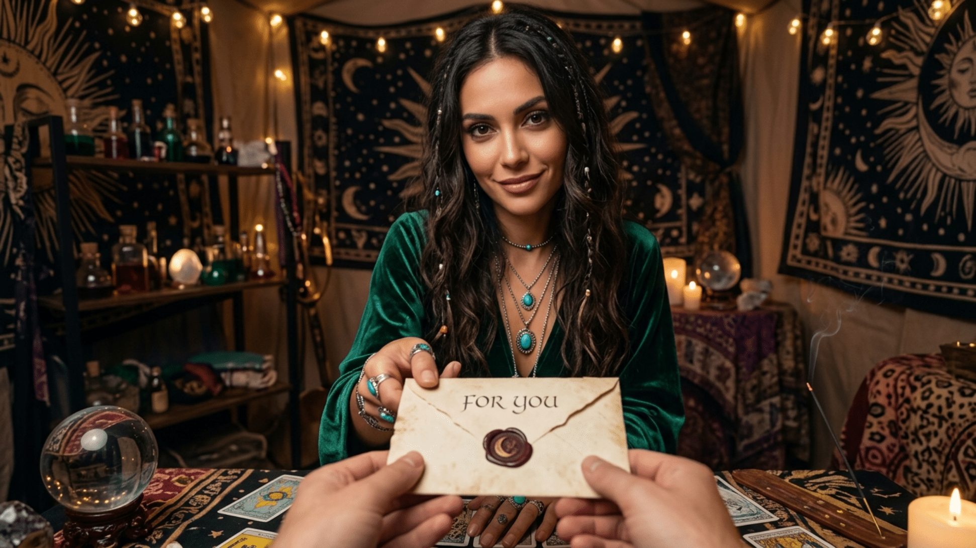 Você abre sua caixa de correio e lá está: um envelope misterioso com seu nome escrito à mão, prometendo revelações sobre seu futuro, amor ou fortuna.